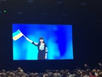 В этот же день состоялась церемония выноса флагов стран-участниц. Нашу страну представляла очаровательная Аня Коваль, которая своей улыбкой сразила переполненный зал наповал (многие делегаты выходили в национальной одежде, и вышиванка Ани очень органично и красиво смотрелась на этой выдающейся церемонии).