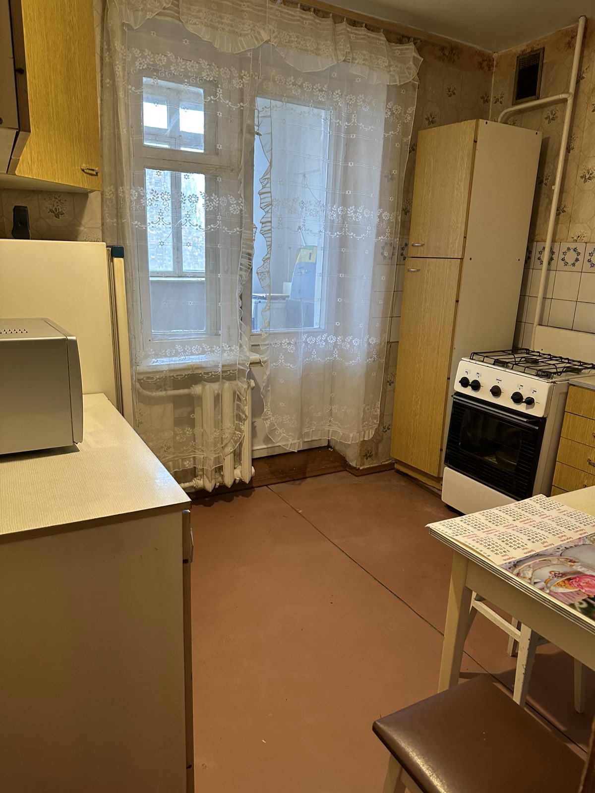 Квартира світла, не кутова, вікна квартири виходять на південь дуже тепла, повністю обставлена, є необхідні меблі- шафа, два 2 спальних розкладних дивани в гарному стані, вбудовані кухонні меблі, стіл, стільці) та холодильник, газова плита з духовкою