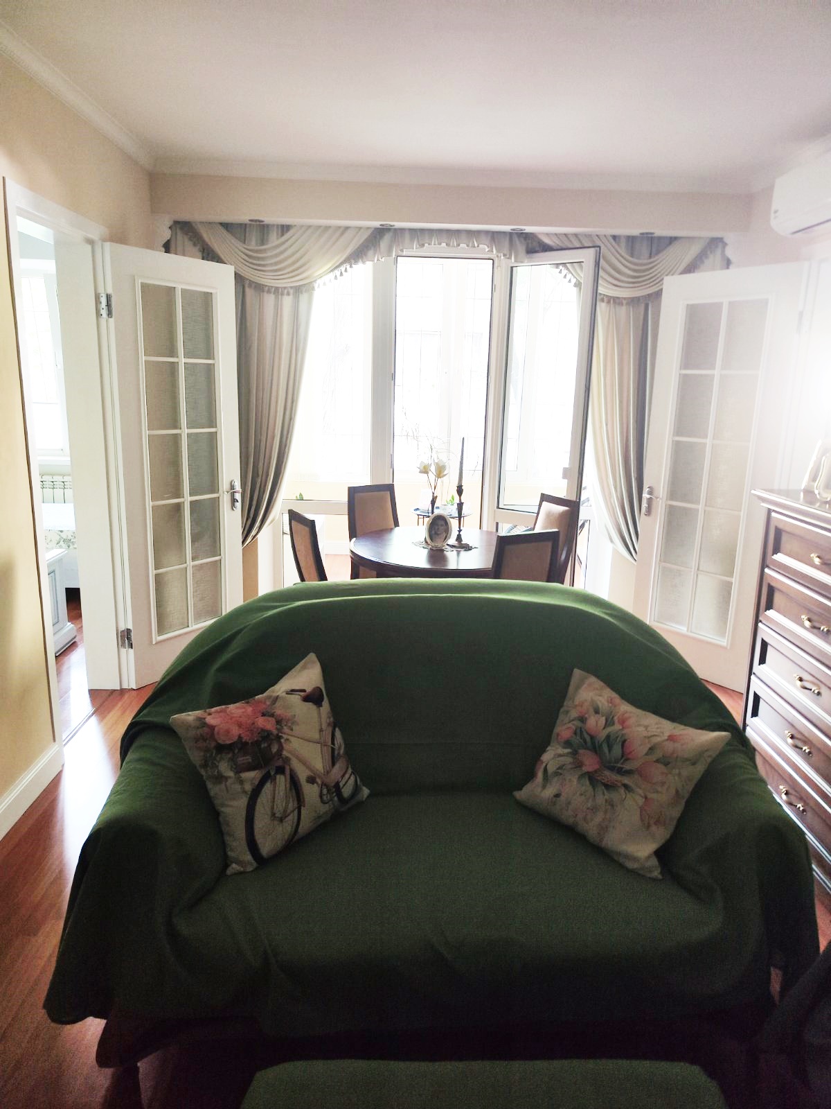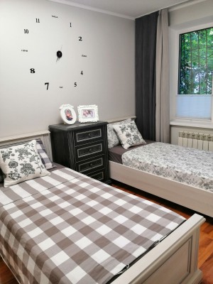 Квартира світла,не кутова,вікна квартири виходять на південь,дуже тепла,повністю обставлена,є необхідні меблі- шафа,2 спальний розкладний диван в гарному стані,ЛІЖКА,БАГАТО СПАЛЬНИХ МІСЦЬ,вбудовані кухонні меблі,стіл,стільці) та техніка (холодільник,газова плита з духовкою,кондиционер інвертор,зима літо,посудомийка,пралка)