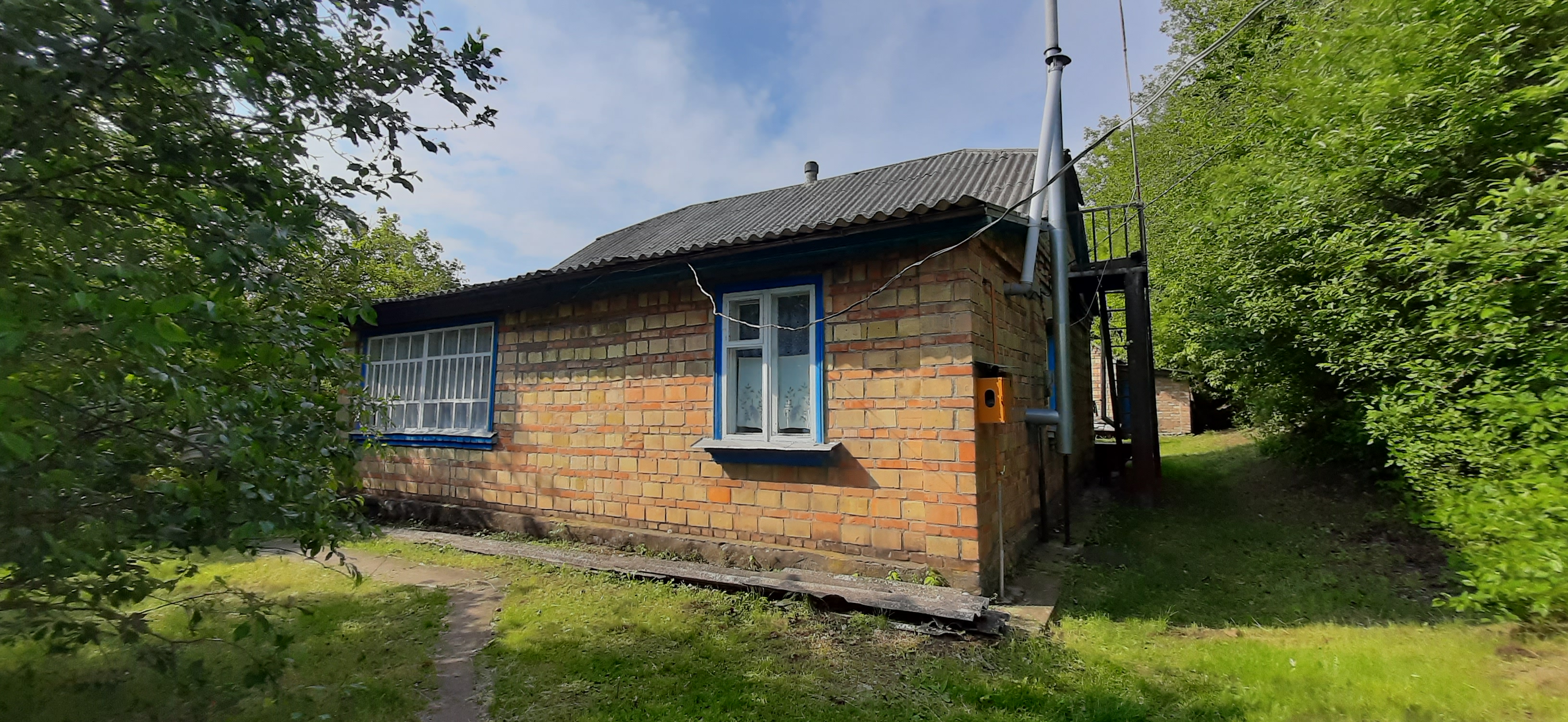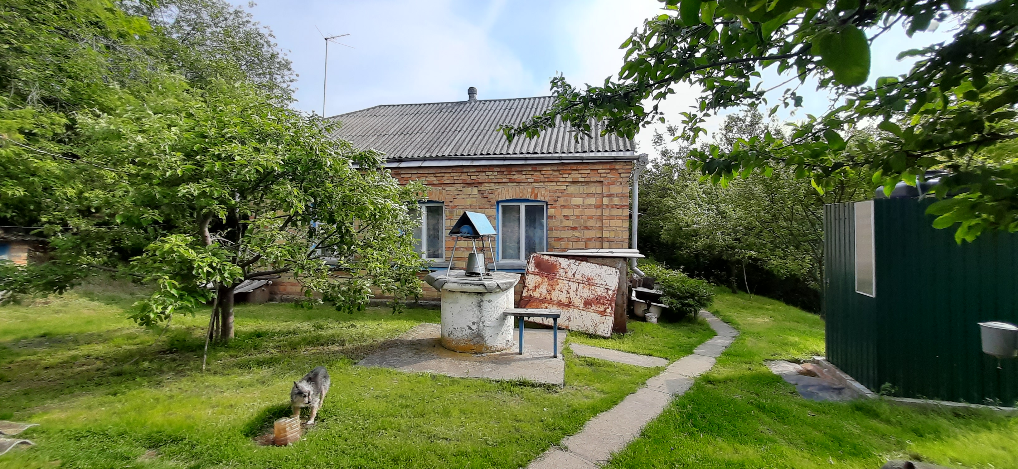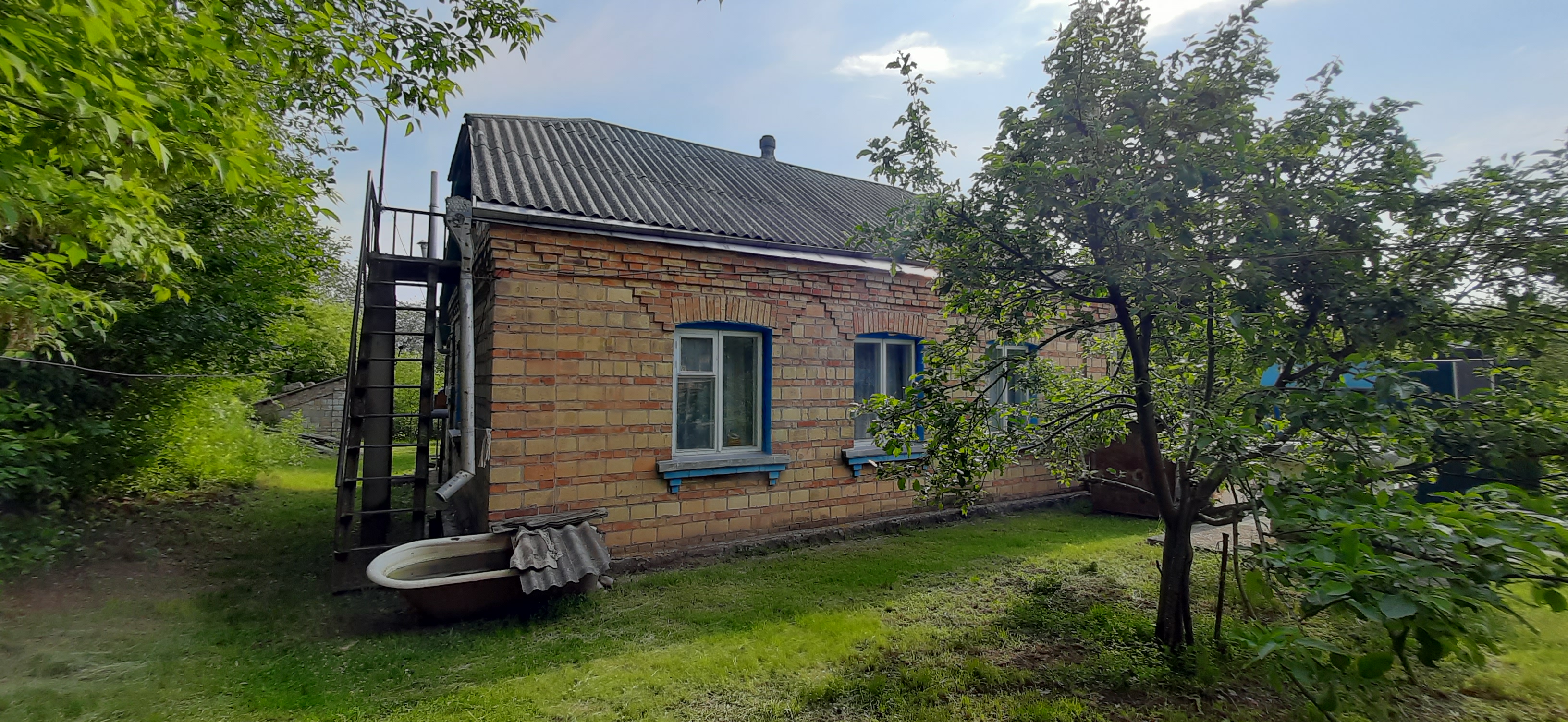 цегляний будинок з просторою ділянкою, садом