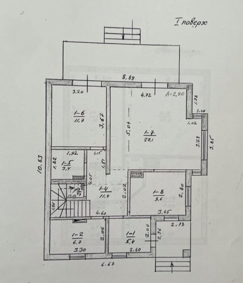 Двоповерховий: 4 спальні, 2 санвузли, підсобне приміщення.