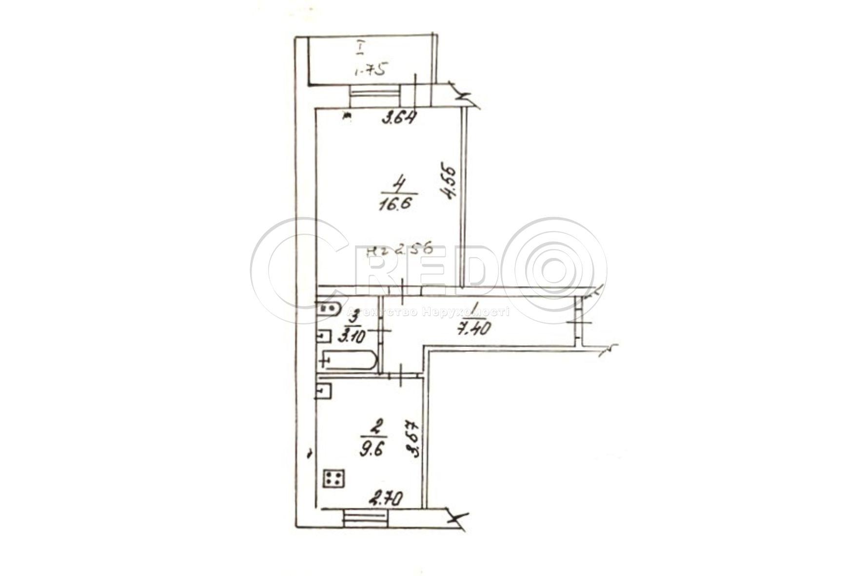 1 кімн., площа 31/17/6, поверх 5/5