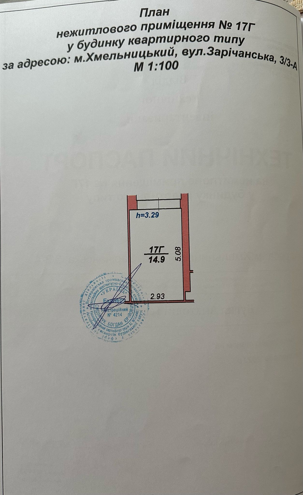 Площа: 14,9 кв.м. (2.93х5.08м, висота 3.29м)