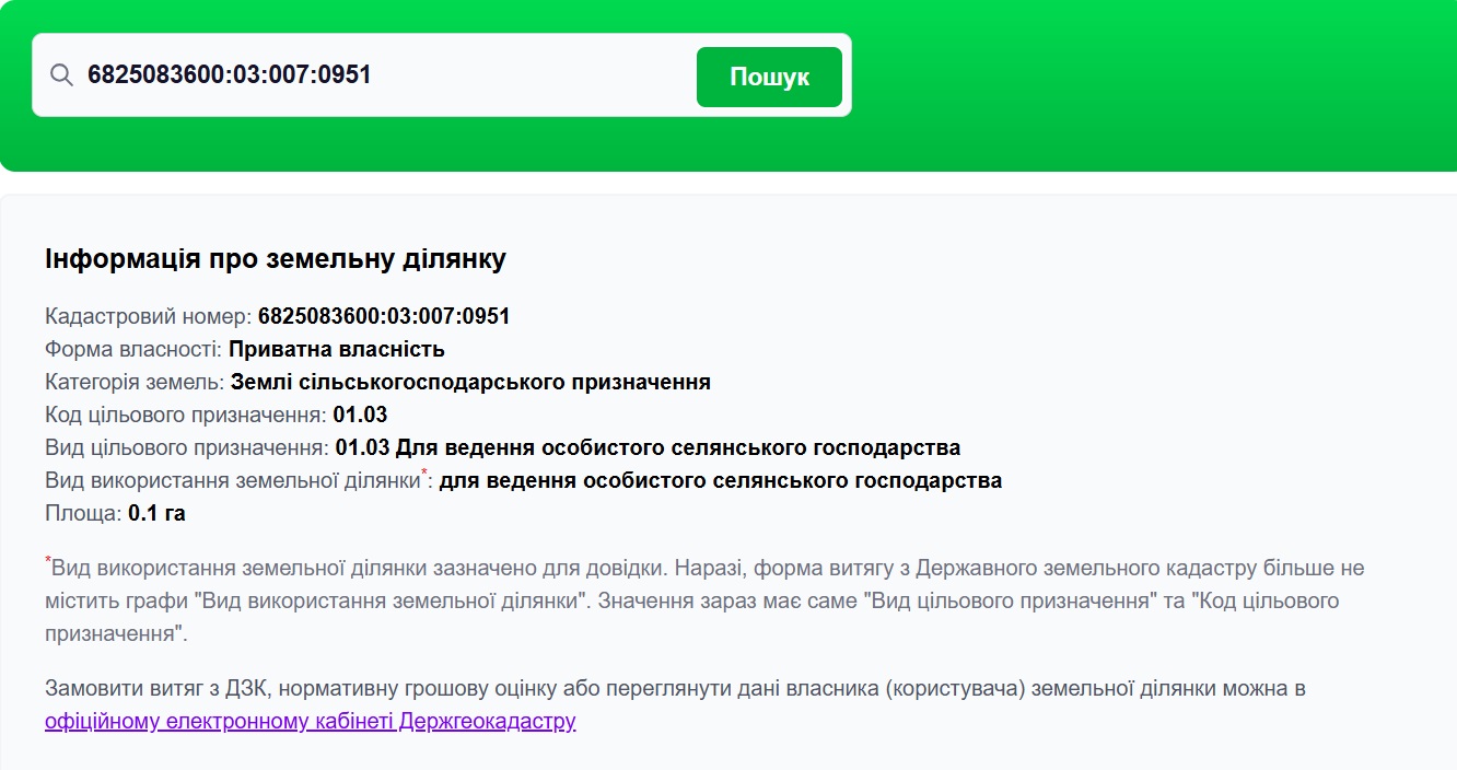 Кадастровий номер: 6825083600:03:005:1871