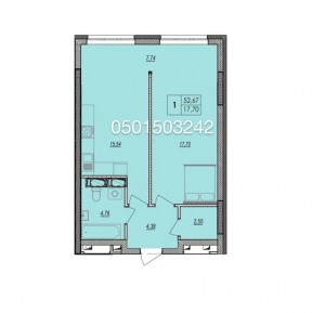 Загальна площа - 52,67 м2, кухня-вітальня 15,54 м2.