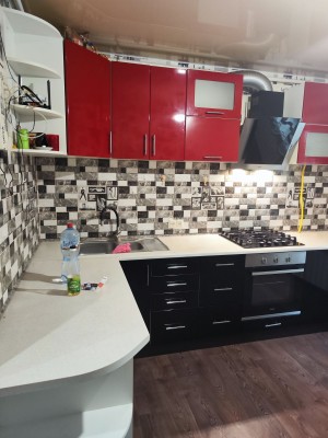 КВАРТИРА має велику кімнату квадратної форми,великий передпокій з вбудованою зручною шафою купе, з кімнати виходить лоджа, в квартирі є зручна квадратна кухня, на кухні є мийка для посуду, газова плита З ДУХОВКОЮ, вбудовані кухоні меблі, НОВИЙ 2 КАМЕРНИЙ ХОЛОДИЛЬНИК, та пральну МАШИНУ (на фото ще немає, будуть куплені )