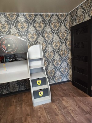 Квартира обставлена гарними меблями, є 2 спальне ліжко та чудове дитяче ліжко , квартира виходить вікнами в тихий зелений двір
