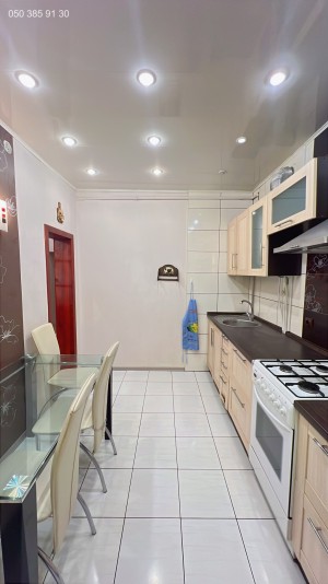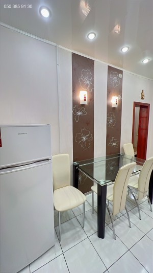 На кухні є кухонні меблі, техніка, все залишається. В кімнаті двоспальне ліжко, диван, шафа-купе.