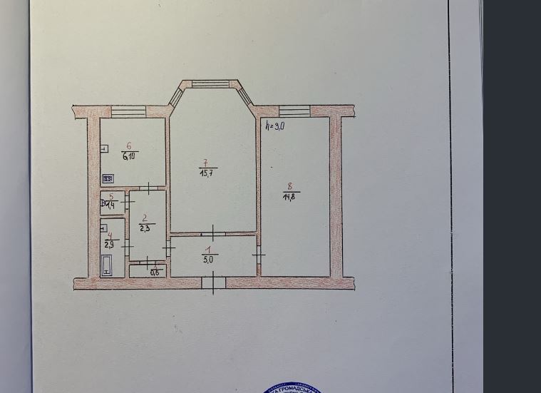 3 кімн., площа 68/49.2/7.8, поверх 1/9
