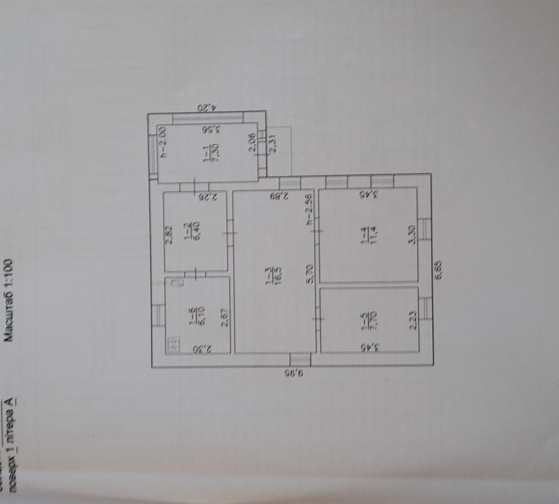 п'ятдесят п'ять метрів, на три кімнати, шести метрова кухня