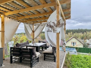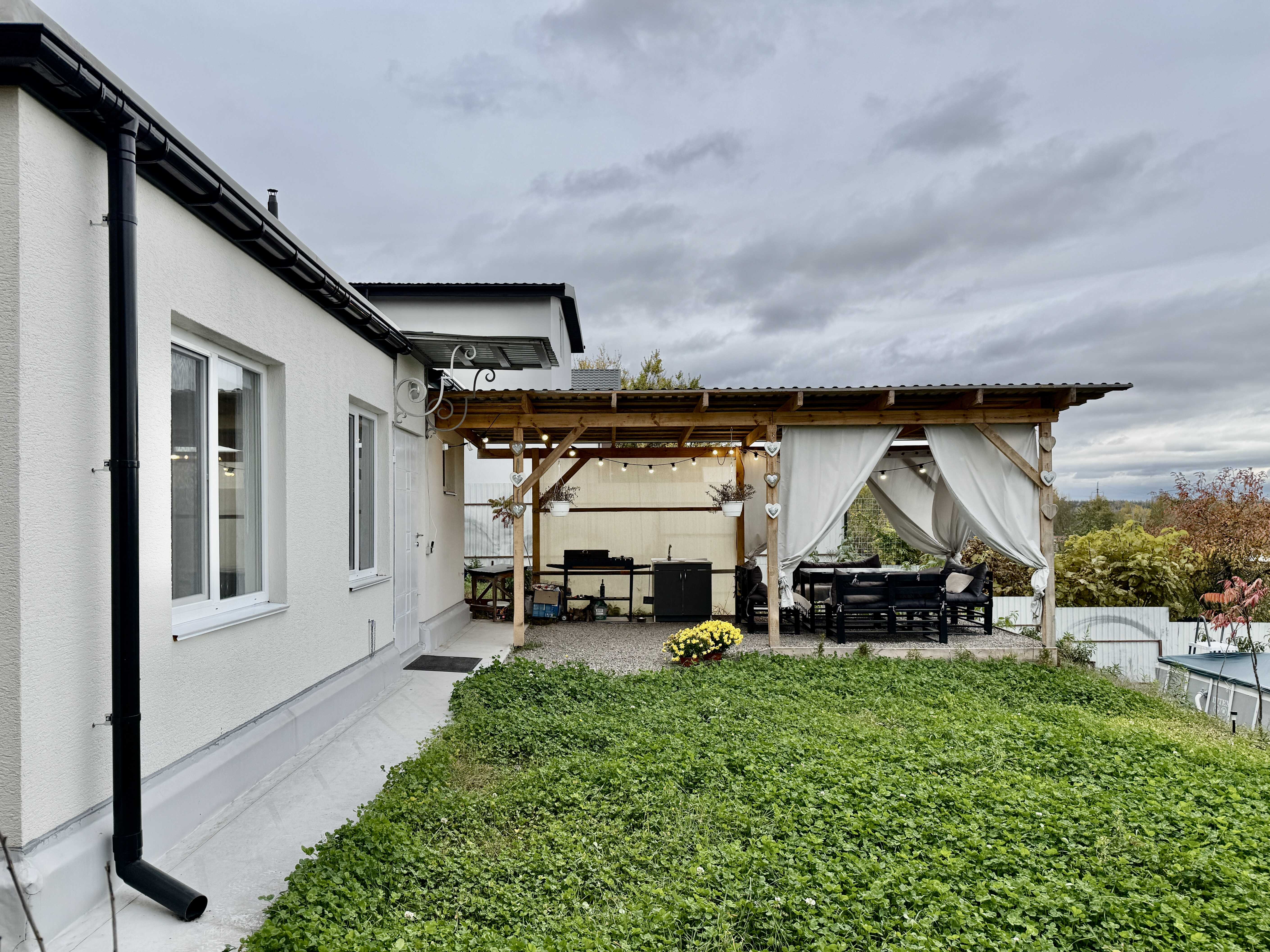 Будинок із власною терасою та неймовірним краєвидом — Київські Карпати, захід сонця просто з двору Меблі та техніка: усе залишається — будинок повністю готовий до проживання Власне залізобетонне укриття 2 технічні приміщення, які можна використовувати як комору або майстерню Вулиця заселена, спокійна, сусіди доброзичливі Підігрів підлоги у ванній Власна городина, озеро поруч, лісові прогулянки Територія укріплена бетоном (додаткове залиття) Якісна питна вода з власної свердловини (70 метрів) — аналіз підтверджено Басейн і камера відеонагляду з оглядом 360° Електрика — 10 кВт, нові трансформатори, стабільна напруга Поруч державна школа, приватний садочок, магазини, ресторани, озеро, зони відпочинку. До Києва — лише 35 хвилин на авто.