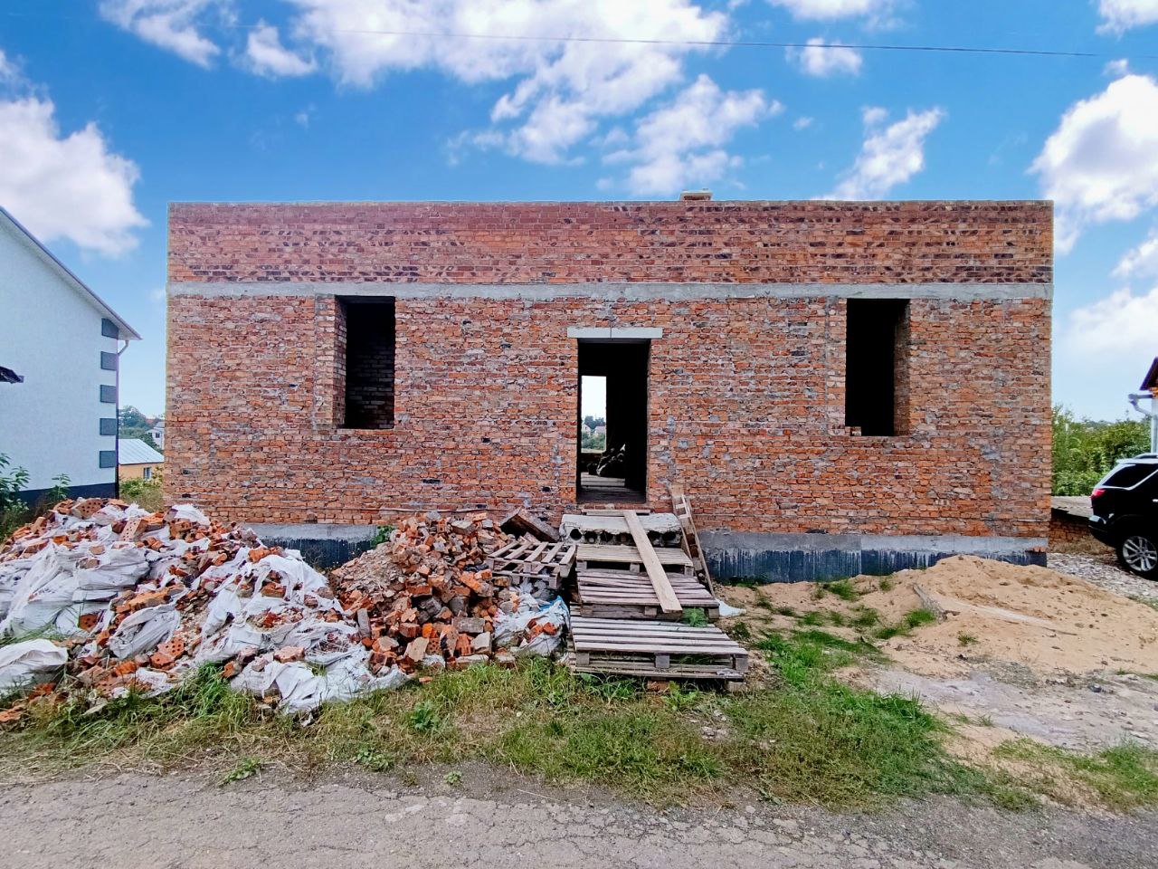 Продам Будинок (коробка) два поверхи 173 м2 на земельній ділянці 6 соток, м. Хмельницький р-н. Лезнево вул. 1-й Купайла проїзд. СТ «Світанок». Дорога до ділянки асфальтована, 450 метрів до зупинки громадського транспорту. Характеристики: - коробка в два поверхи - 3-и кімнати (23.1+30.5+17 м.кв.) + велика вітальня-кухня (55 м.кв.) - стеля 1 пов. h = 2.85 м., 2-й h = 3.0 м. - зовнішні стіни в півтори цегли (без утеплення) - перекриття поверху залізобетонне - дах: плаский, рубероїдна покрівля даху - зроблено вивід під камін - усі комунікації: вода свердловина, каналізація септик, газ на ділянці, світло на ділянці 3 фази 5 кВт (є можливість збільшити до 15) - лічильник на світло Ділянка 6 соток в приватній власності: Кадастровий номер: 6810100000:34:001:1066 Тип власності: Приватна власність. Цільове призначення: 01.05 Для індивідуального садівництва Площа: 0.06 Га
