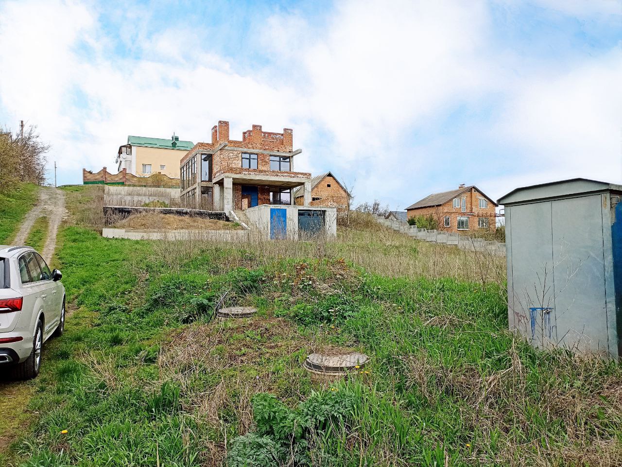 Продам землю з монолітною коробкою 290/70/50 м.кв. р-н. Раково вул. Щерби 26/1. Кінцева запинка (від АТБ 3 хв. пішки). Ділянка 14 соток. Кадастровий номер: 6810100000:25:002:0432. По землі зроблена геологія, геодезія. Вода - своя скважина. Септик подвійний. Електрика - 380В, 25кВт. Газ не підводили. Гідроізоляція. Будинок: 290/70/50кв.м. (підвал та частина терас не враховані в площу) Цоколь: гараж з автоматичними воротами, тех.приміщення, підвал. 1й поверх: велика кухня-вітальня, 2 кімнати, с/в, великі панорамні розсувні вікна, подвійне світло. 2й поверх: 2 кімнати, с/в, зона відпочинку, тераса. Пласка криша з зоною відпочинку. Ліфтова шахта з цокольного поверху. В експлуатацію будинок не вводився. Проект на будинок.