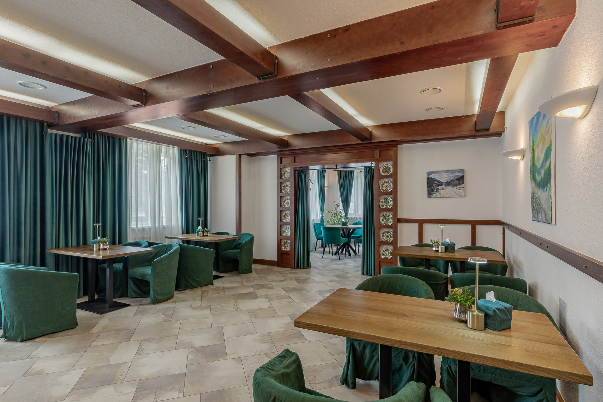 На території працює ресторанний комплекс із літньою терасою. Концепція кухні базується на поєднанні автентичних гуцульських традицій та класичних європейських страв.