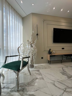 Квартира з неймовірними краєвидами, що відкриваються з панорамних вікон. Ремонт виконаний з дорогих та якісних матеріалів у світлих, спокійних тонах. Є 3 кондиціонери. Тепла підлога по всій квартирі. Квартира на електриці. У квартирі продумано все до дрібниць, починаючи з санвузла, закінчуючи просторими гардеробними. Простора кухня-вітальня дозволить приймати багато гостей. 2 окремі спальні. Залишається абсолютно все: меблі, техніка. Заходь і живи. Ця розкіш чекає на тебе.