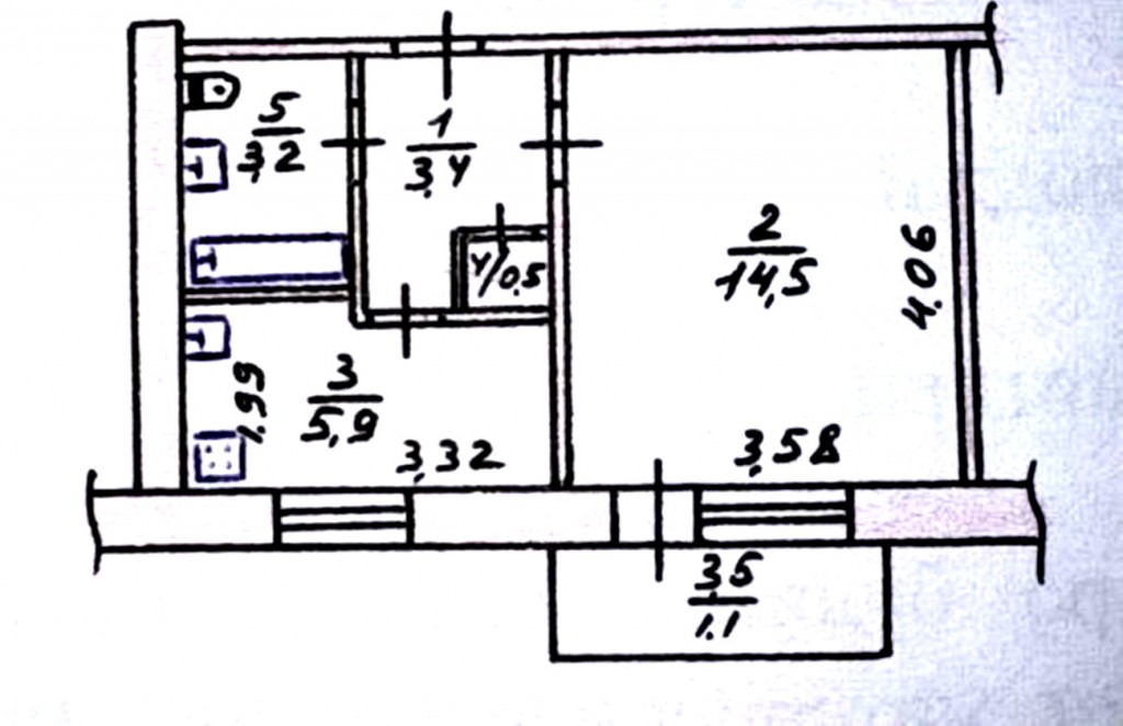 1 кімн., площа 30/17/6, поверх 5/5