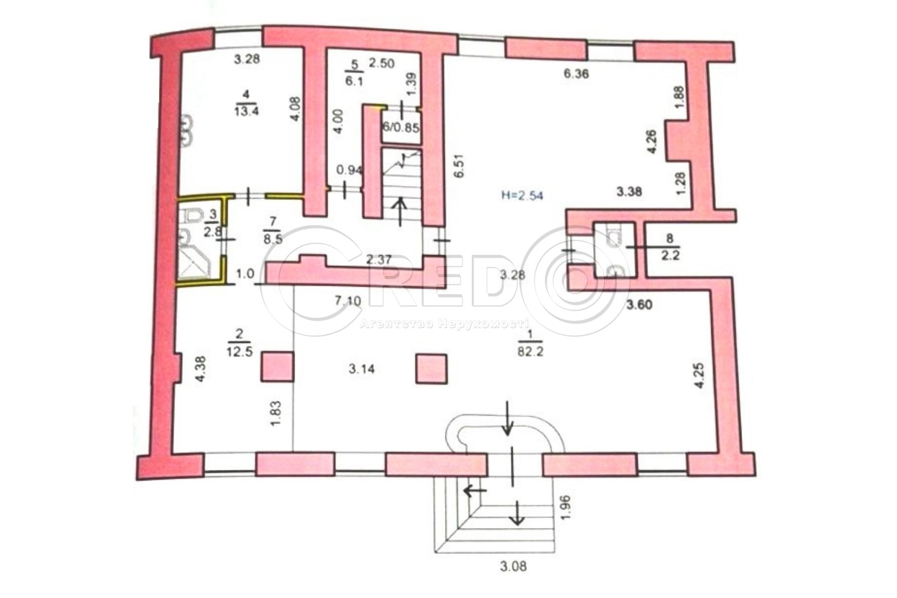 - Висота стелі – 2.54м.