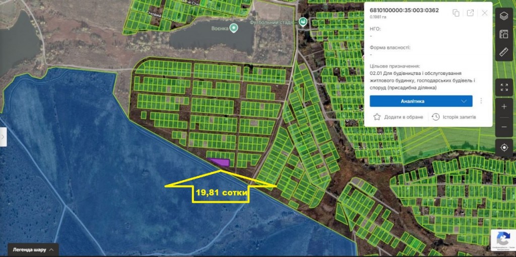 Площа ділянки: 19 сот