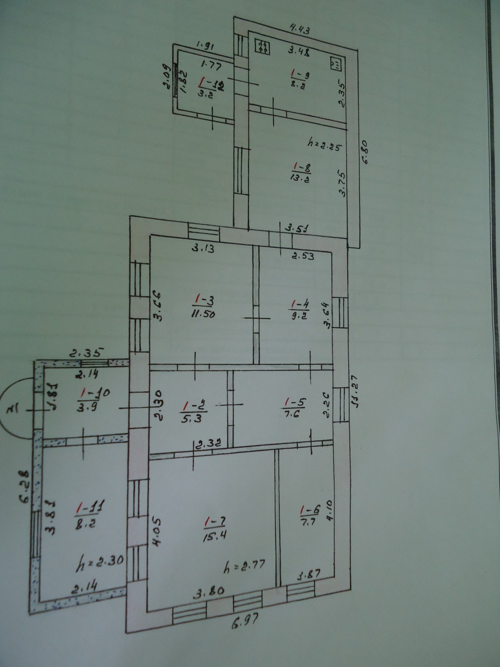Продаётся дом 1960 года постройки из камня 6 комнат,высота потолков 2,70 метра,крыша шиферная,планировка комнат-смежно раздельные,все размеры даны на фото.
