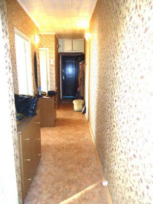Квартира отличается нестандартной планировкой,с\у расположен возле кухни,рядом с входной дверью,в начале коридора, а вместительная кладовая в конце коридора.