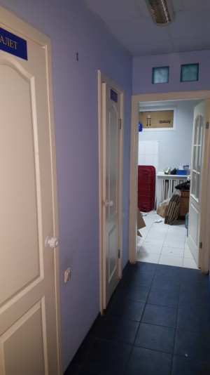 Стены штукатурка, гипсокортон, окрашенные, пол кафель, потолок амстронг.