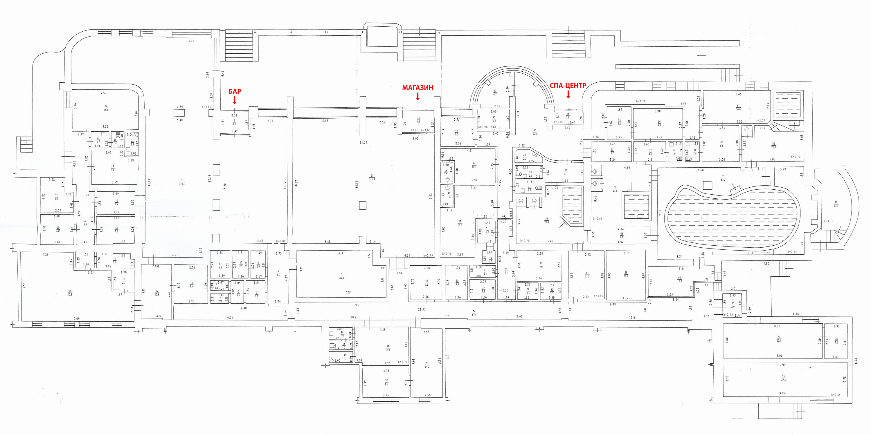 Общая площадь 1100м2, своя генераторная — нет проблем с перебоями электроэнергии, необходимое напряжение в 380В для корректной работы СПА — комплекса и холодильного оборудования продуктового магазина.