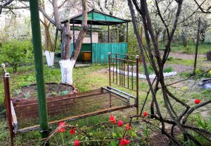 3 . Ухоженная территория. На дачном участке находятся плодовые деверья вишня, абрикос, виноград, кусты: смородины, малины.