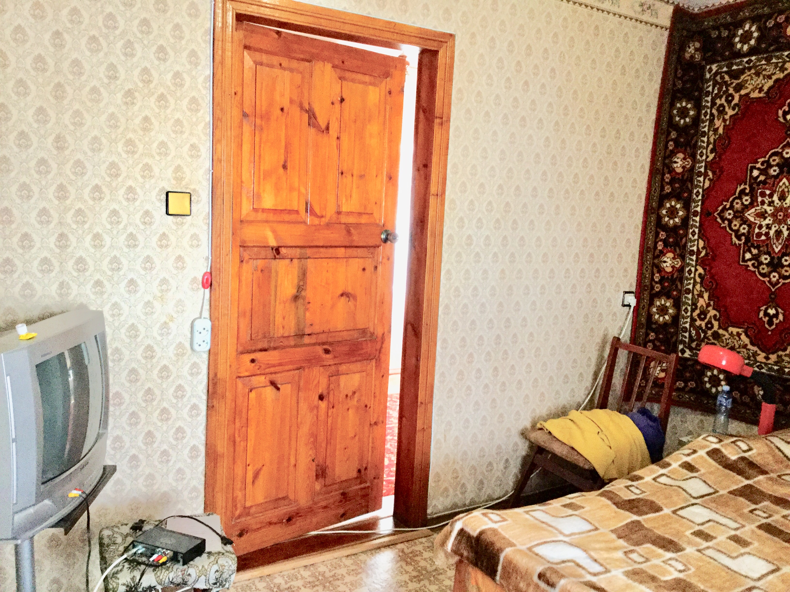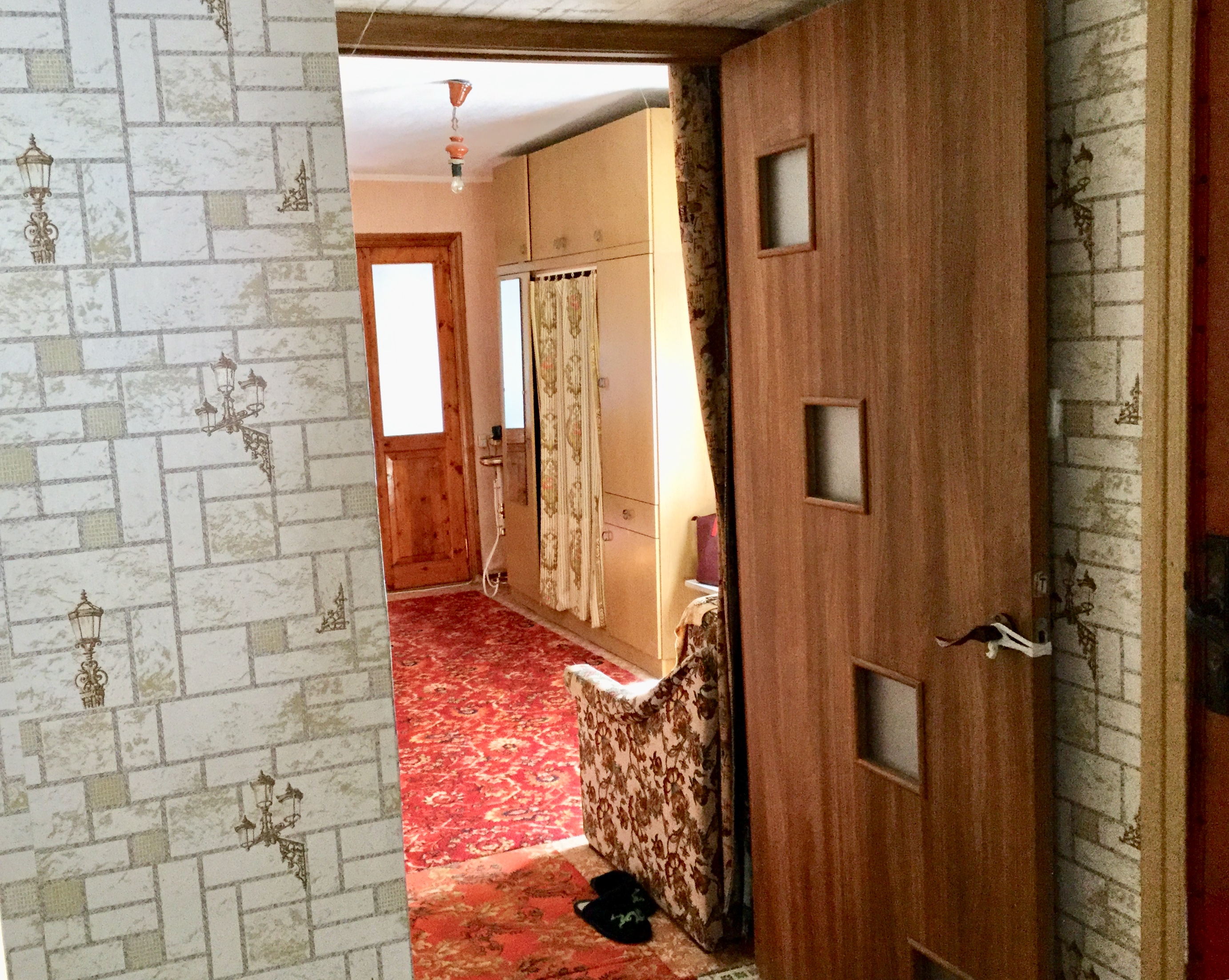 Полы цементные, покрытие: линолеум, плитка. Столярка в хорошем состоянии. На окнах решётки. Современная шпаклевка. Кондиционер.