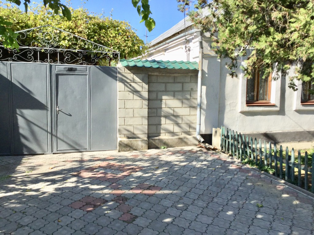 Хорошие ворота, во дворе и перед домом современная тротуарная плитка. Удобная планировка участка. Примерно половину участка занимает дом, замощённый двор, гараж, вторая половина - сад.