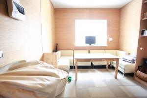 Первый этаж : гостинная,кухня, столовая, Сауна с душевой и комнатой отдыха. Гардеробная комната, Туалет. Котельная. Терраса.