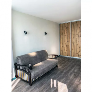 В прихожей и комнате вместительные шкафы-купе, удобный диван в комнате.