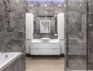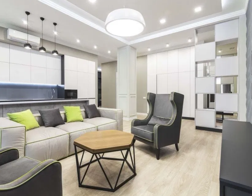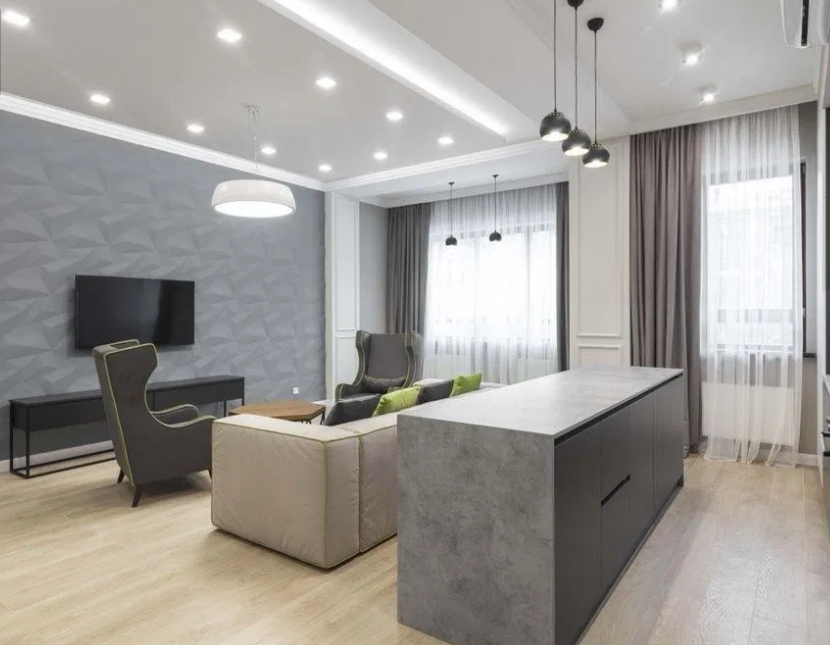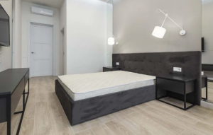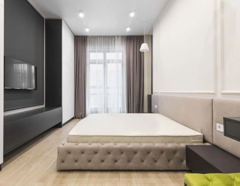 В квартире 2 спальни, кухня-студия, 2 гардероба , 2 санузла.