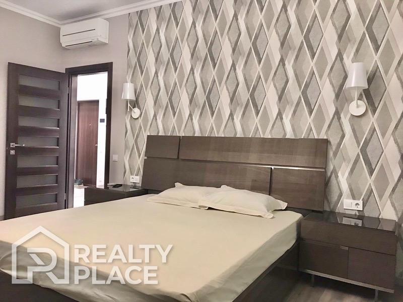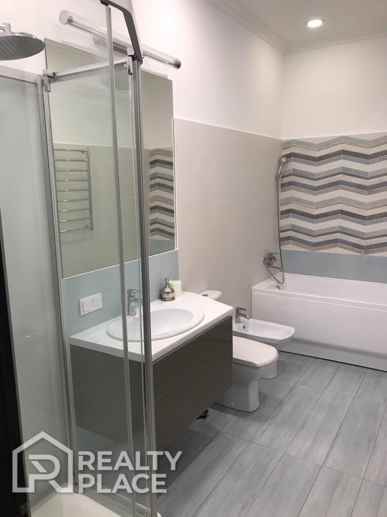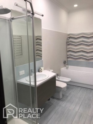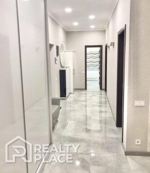 В квартире выполнен современный евроремонт с применением дорогостоящих строительных и отделочных материалов. Квартира полностью укомплектована всей необходимой мебелью и техникой ведущих мировых брендов.