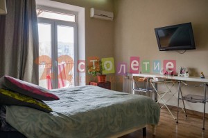 пр. Пушкина/Чечерина д.22 напротив памятника А.С. Пушкина. Квартира двухсторонняя. Окна с кухни и спальни, балкон, выходят во двор, окна гостиной и лоджии - на проспект.