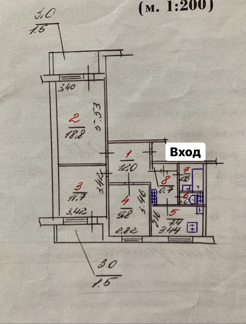 Загальна площа – 54 м. кв., житлова – 31,4 м.кв., площа кухні – 7,8 м. кв.,…