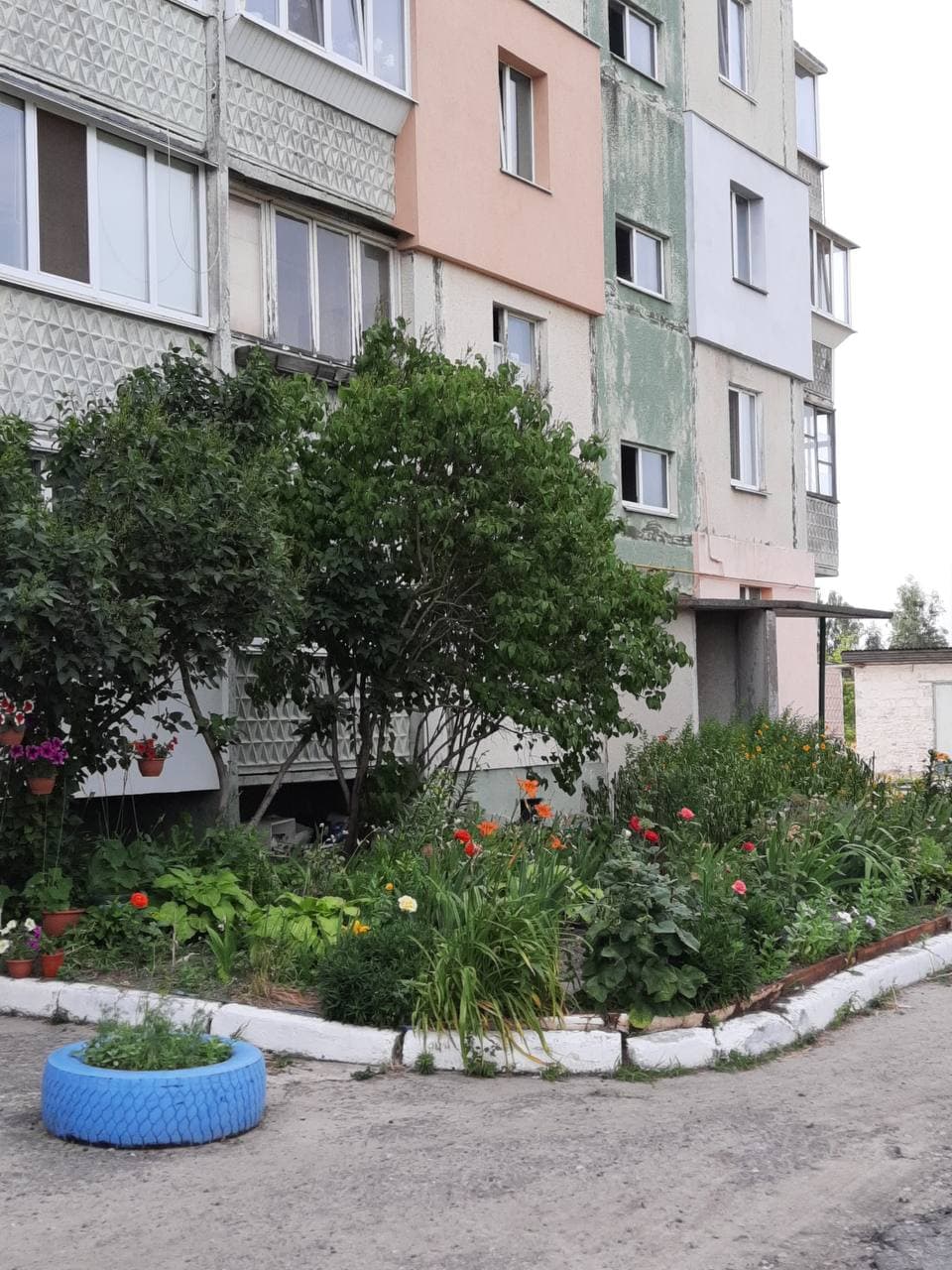 Дом в 4 этажа расположен на тихой улочке, вдали от трассы. Вокруг много зелени и цветов. Хорошие отзывчивые соседи,