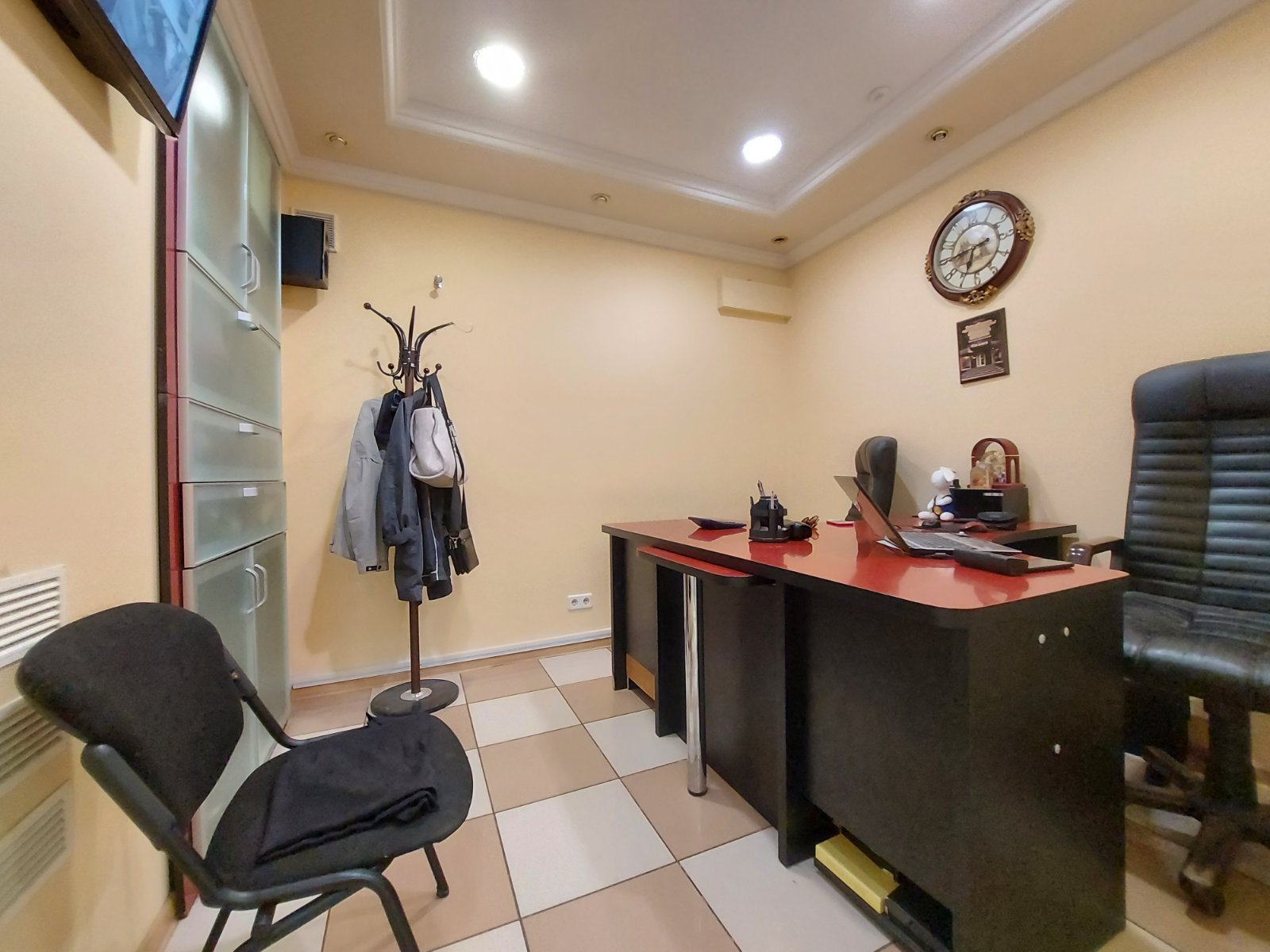 И дополнительные помещения, такие как кабинет, комната для персонала, санузел и складская комната.