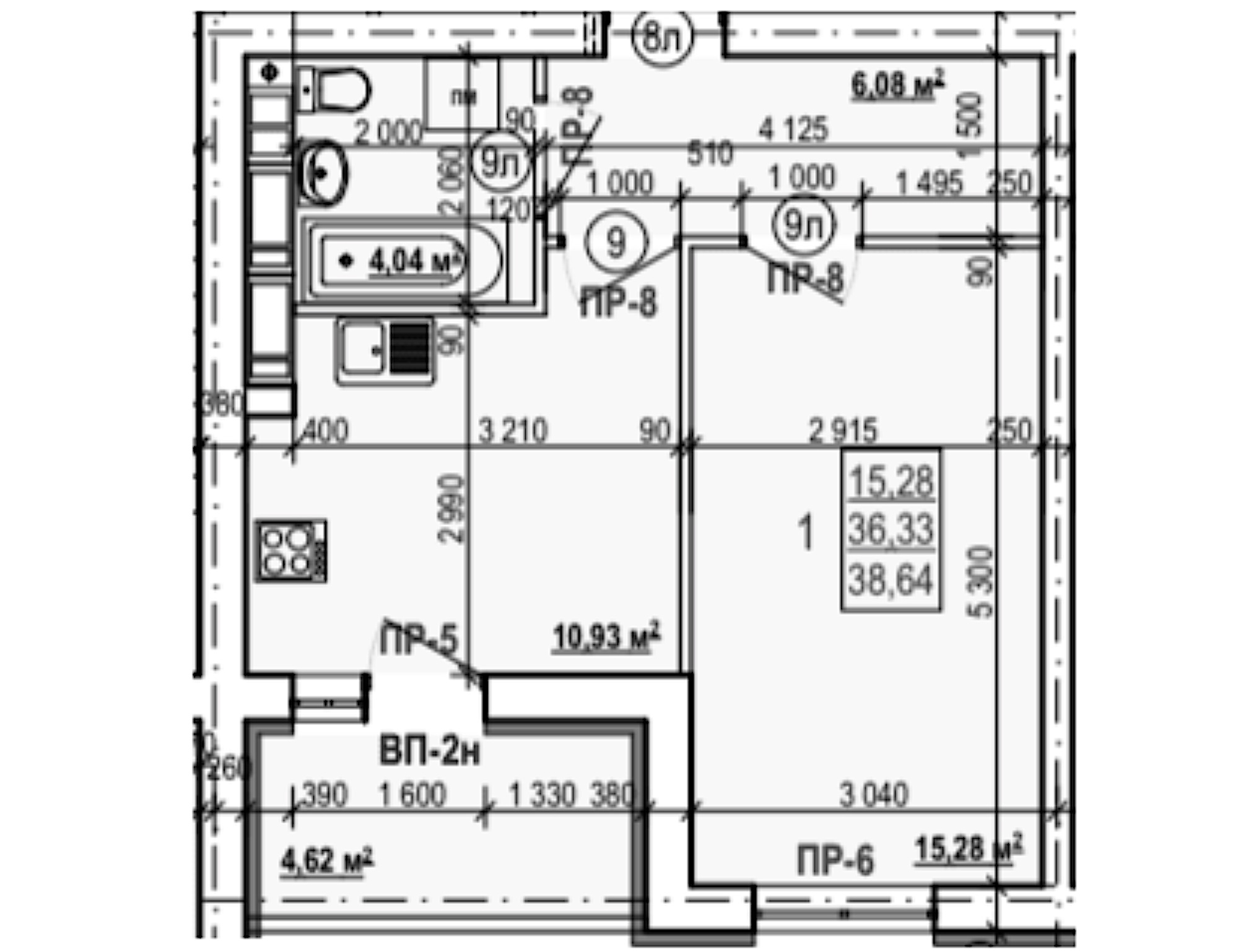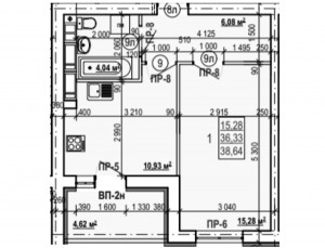 1 кімн., площа 33/15/8, поверх 4/9