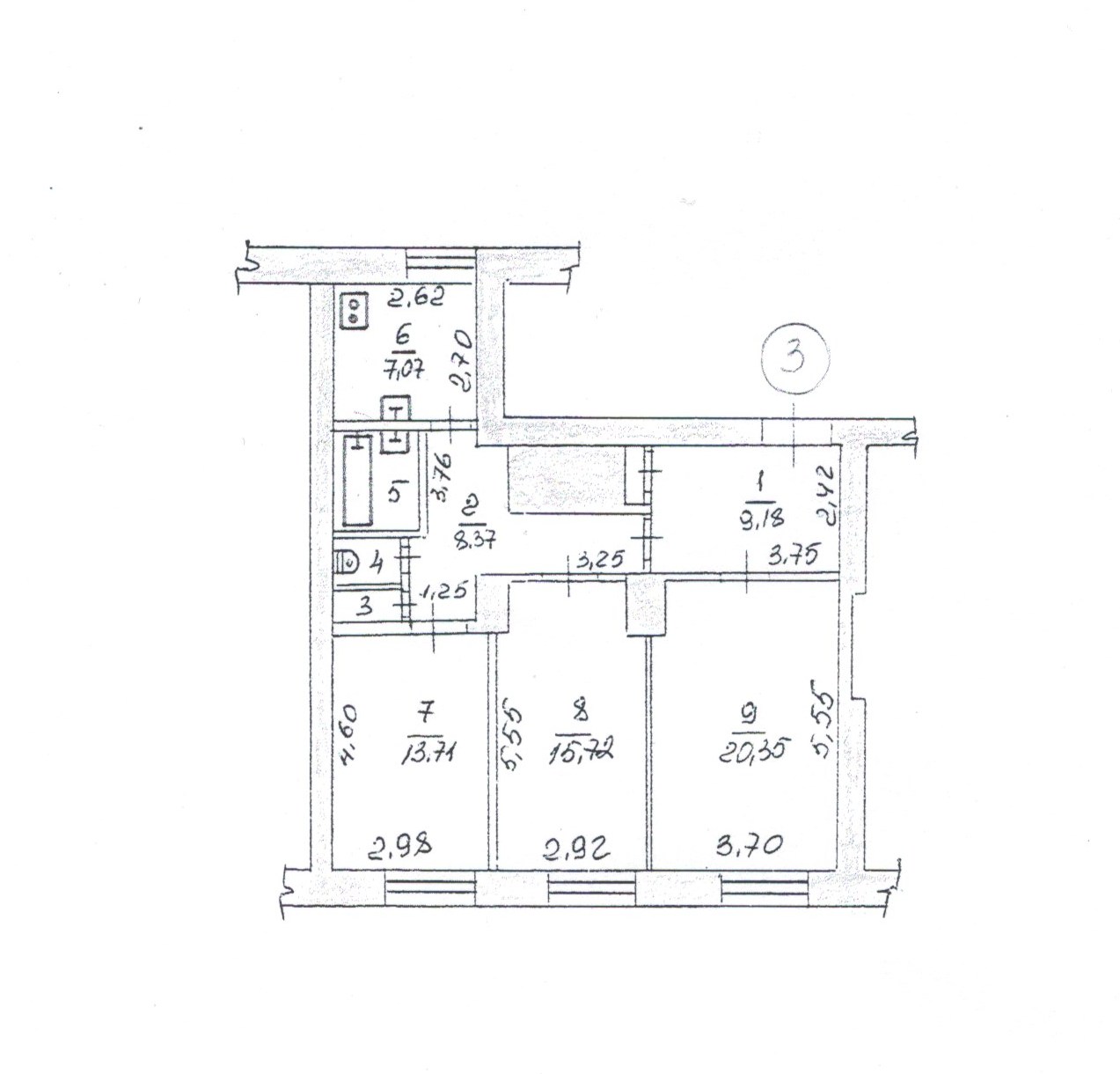 3-ка перепланирована в 2-ку (Перепланировка узаконена).