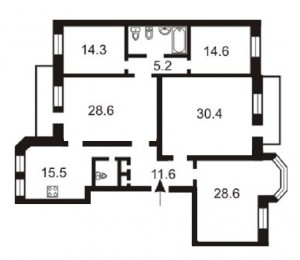 - в квартире: кухня, столовая, гостиная, 2 спальни, кабинет, 2 с/у;