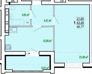 Загальна площа: 47 кв.м