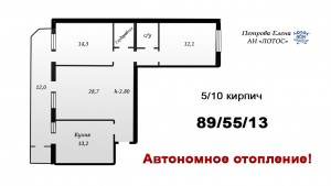 Квартира расположена в середине теплого кирпичного дома на 5 этаже. Планировка отличная— просторные комнаты выходят на две стороны.