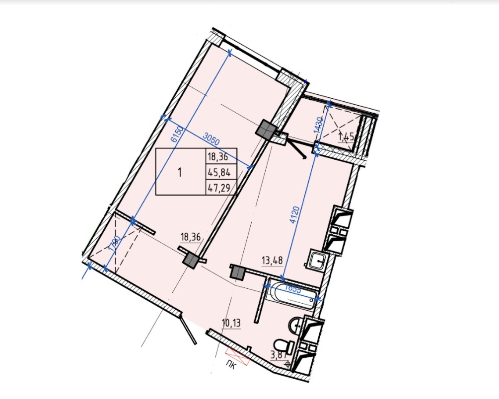 Загальна площа: 47.29 кв.м