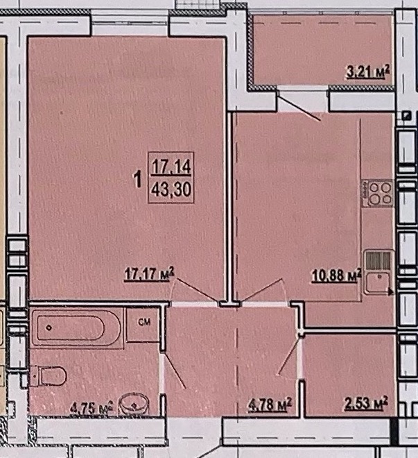 Загальна площа - 43 м²;