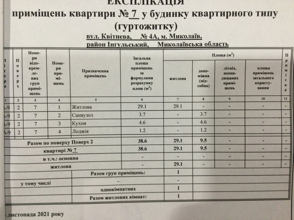 Жила площа: 29 кв.м