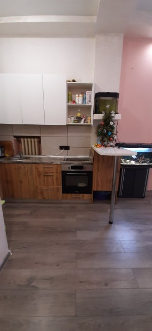 Максимально укомплектована современной мебелью, техникой, подсветка, полностью замена проводки, натяжной потолок, высота 3,4м, ламинат,