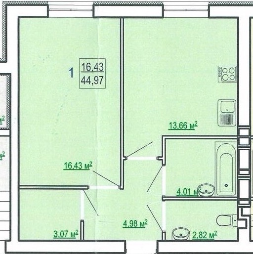 Загальна площа: 44.97 кв.м