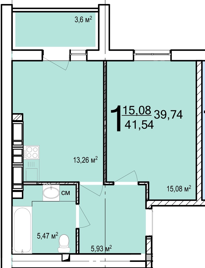 Жила площа: 15 кв.м