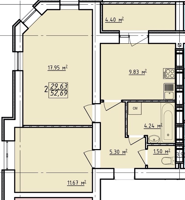 Загальна площа - 52 м²;