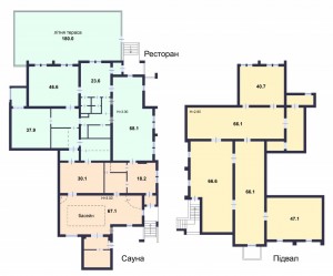 ✅площадь: 710 м2 (ресторан 253 м2 + сауна 150м2 + подвал 305 м2);
